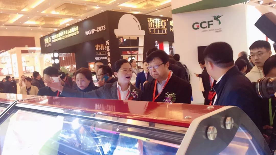 中國輕工業聯合會兼職副會長、中國焙烤食品糖制品工業協會理事長朱念琳先生也蒞臨了華寶孔雀展位,由華寶股份董事、總裁,華寶孔雀董事長袁肖琴女士接待了朱理事長一行。