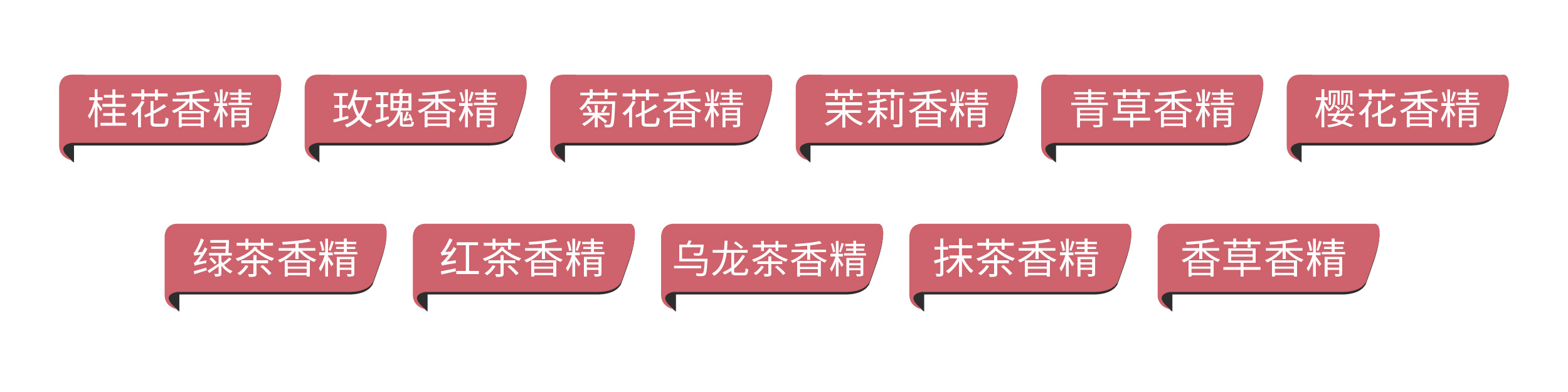 花類香精是華寶孔雀的特色產品,有著非同凡響的市場表現。口感真實,香氣柔和自然。其中,桂花、玫瑰、茉莉、櫻花等擁有市場知名度,隨著消費者近年來對花類產品的鐘愛,該系列將會迎來新的市場機會。